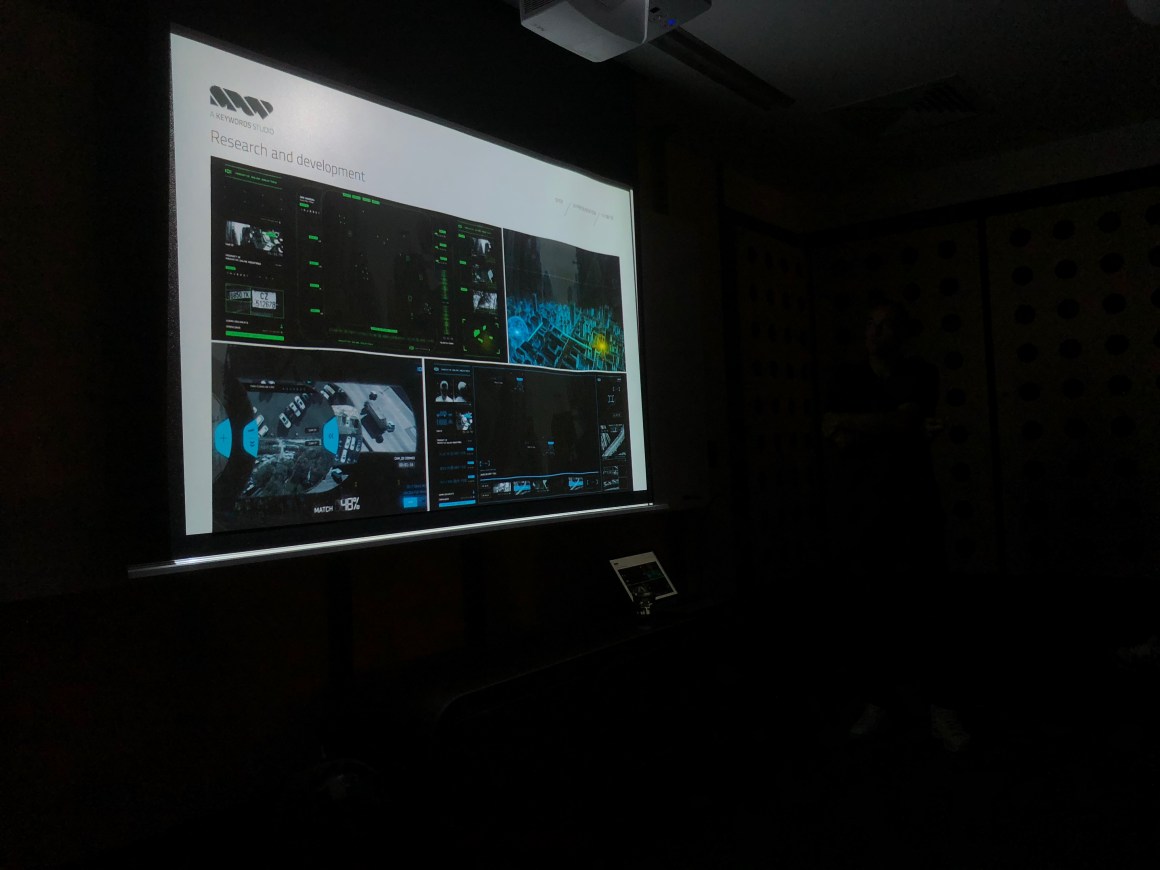 Alex показал проекты компании в дополненной реальности и сделал вводную об истории развития технологии. После этого Илья Торговников и Митя Катькин провели мастер-класс, в котором наша группа сделала маску и виртуальный объект для камеры Facebook с помощью их инструмента AR Studio. Задача была достаточно простой, но здорово показала весь процесс от начала работ до конечного результата.