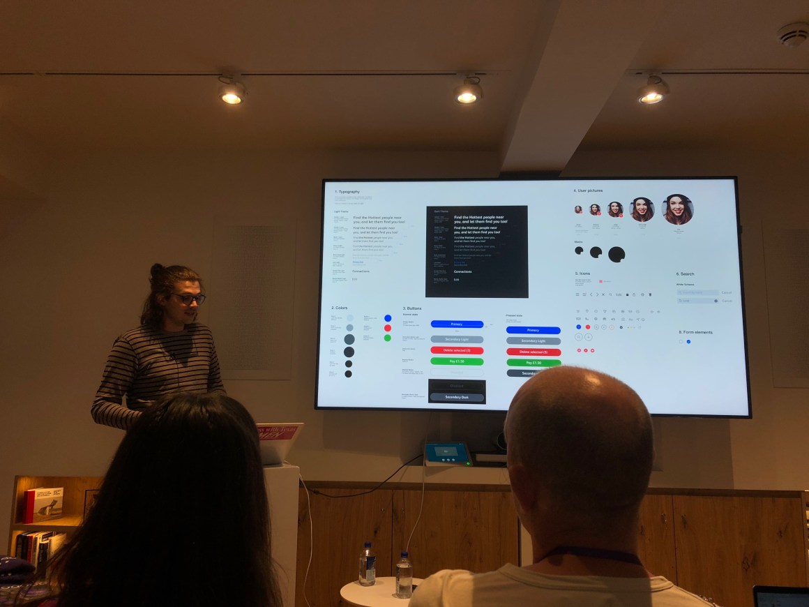 Большой кусок рассказа был посвящён их дизайн-системе Cosmos. Первый шаг — редизайн и стандартизация Badoo — был сделан в 2015 году. В 2016 прошёл ребрендинг и появился новый визуальный стиль. В 2017 начали работу по методологии atomic design. Это была маленькая инициативная группа, которая начала с низко висящего фрукта — промо-экранов в мобильном приложении, которых десятки в продукте. Получился общий код, который легко собирается в конкретные кампании, а полезный эффект было легко измерить. Это помогло выбить ресурсы на развитие дизайн-системы.
