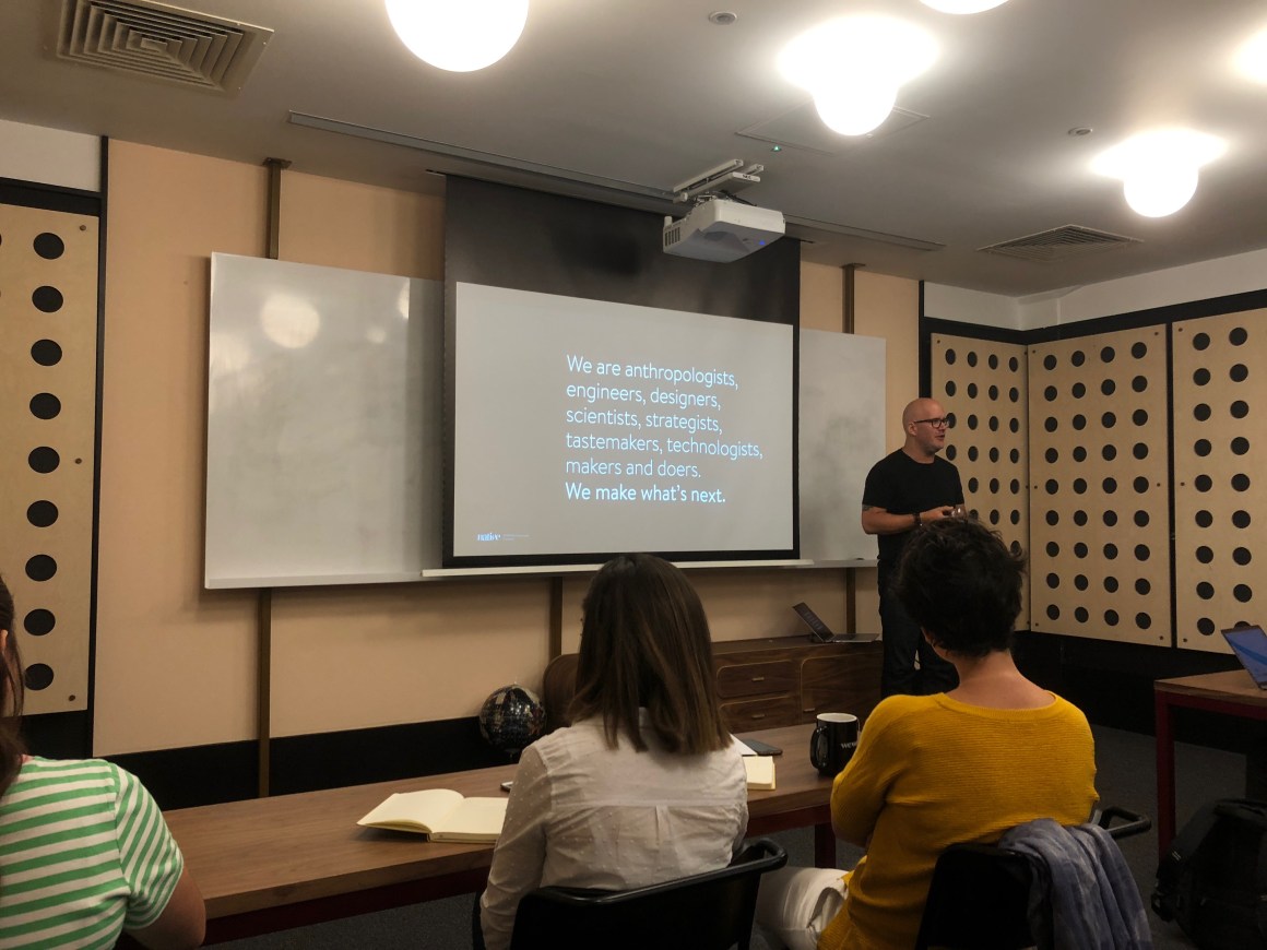 Управляющий директор Alex Willis сделал вводный рассказ о компании, которая существует с 1977 года (первыми начали делать титры для фильмов на компьютере) и успела переизобрести себя уже 9 раз. Причём скорость этих трансформаций нарастает — сейчас это должно происходить каждые 9 месяцев. Ещё в 1986 они стали одной из первых интегрированных цифровых дизайн-студий, а сейчас развивают венчурный фонд и уйму других инициатив.