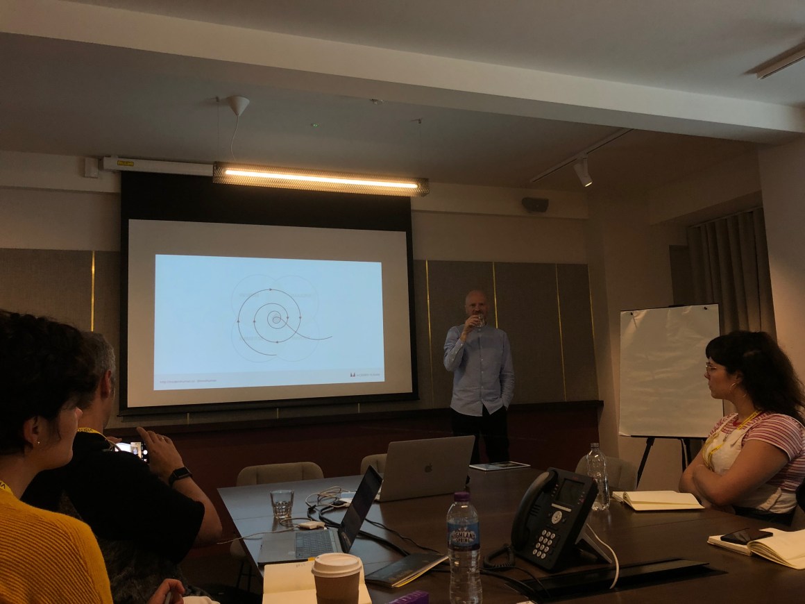 Основатель компании Paul Jervis-Heath рассказал о подходе компании к пользовательским исследованиям и дизайн-процессе в целом на примере проекта умного дома для Electrolux. Я был на его выступлении в рамках UXSTRAT Europe 2017, но сейчас было гораздо больше времени, так что тема раскрылась масштабнее. У Paul очень широкий и глубокий взгляд на понимание пользователей, а рабочий процесс Modern Human поддерживает его. У него четыре шага, которые повторяются по спирали до момента достаточной уверенности в результате: Inspire → Imagine → Invent → Immerse: