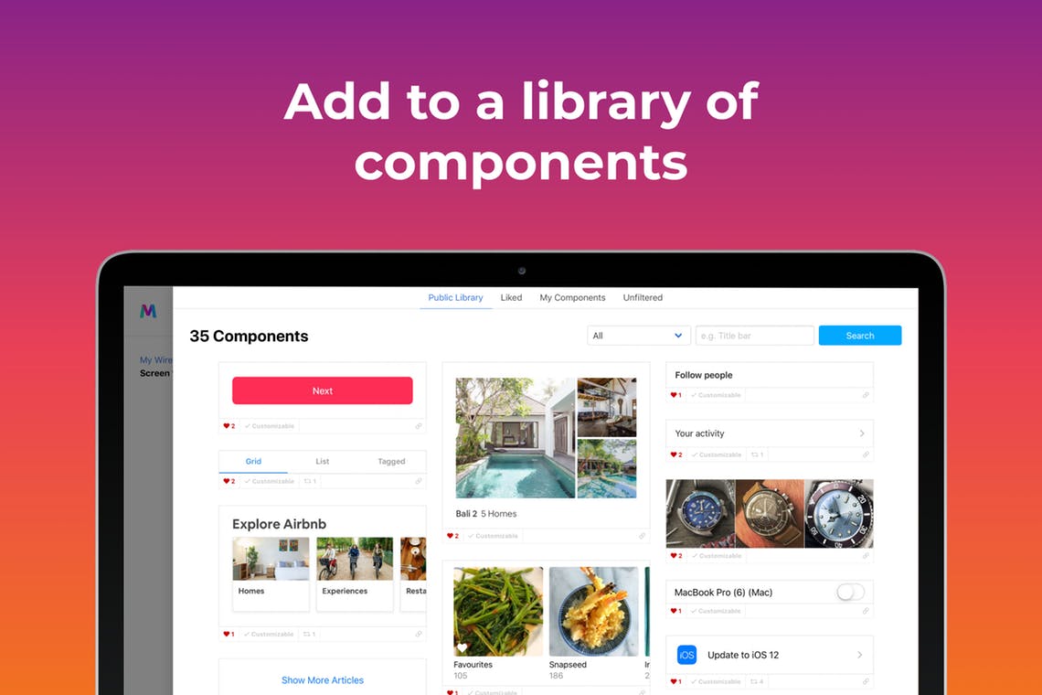 Необычный подход к инструменту дизайна — он делает упор на большую библиотеку компонентов, которые можно скачать и изменить под себя.