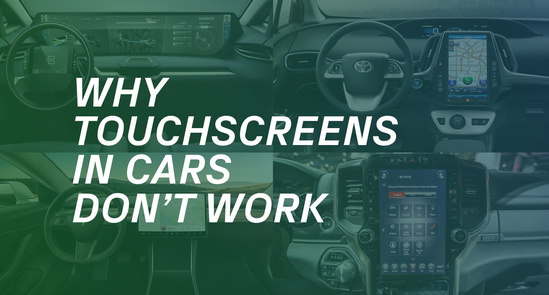 Jacky Li из Connected Lab провел несколько пользовательских исследований на тему управления функциями машины с помощью сенсорного экрана и голоса. Сенсорные экраны, очевидно, отвлекают водителя. Но и голосовое управление не лучше (свежая статья Nielsen/Norman Group приводит конкретные причины).