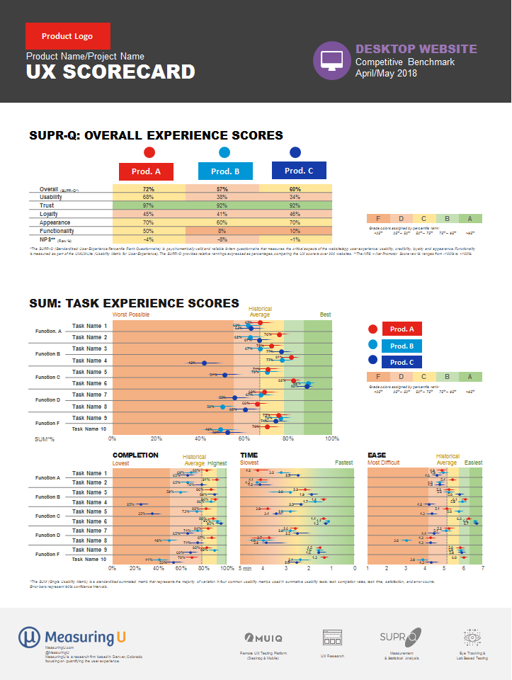 Jeff Sauro описывает подход сводных оценочных листов состояния UX в продукте. Это отличный наглядный инструмент для отслеживания «здоровья» дизайна и выбора точек приложения усилий дизайн-команды.