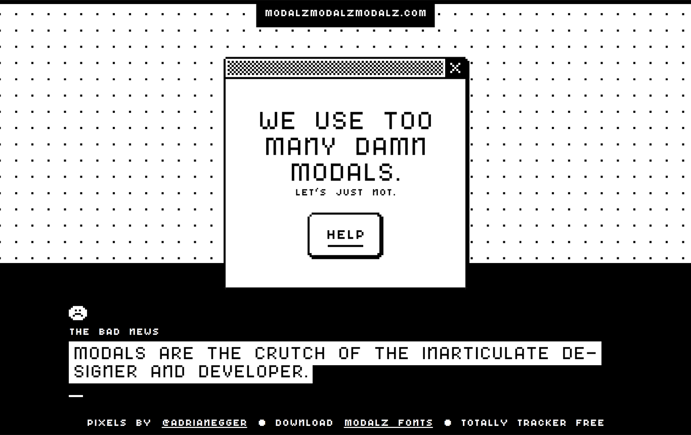 Мини-сайт с памяткой по грамотной реализации диалогов в интерфейсах. Лучший совет — вообще избегать их там, где это возможно.