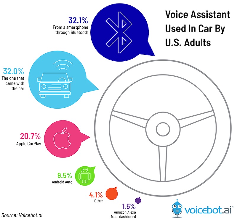 Отчёт об использовании голосовых помощников в машинах. Доли рынка в США.