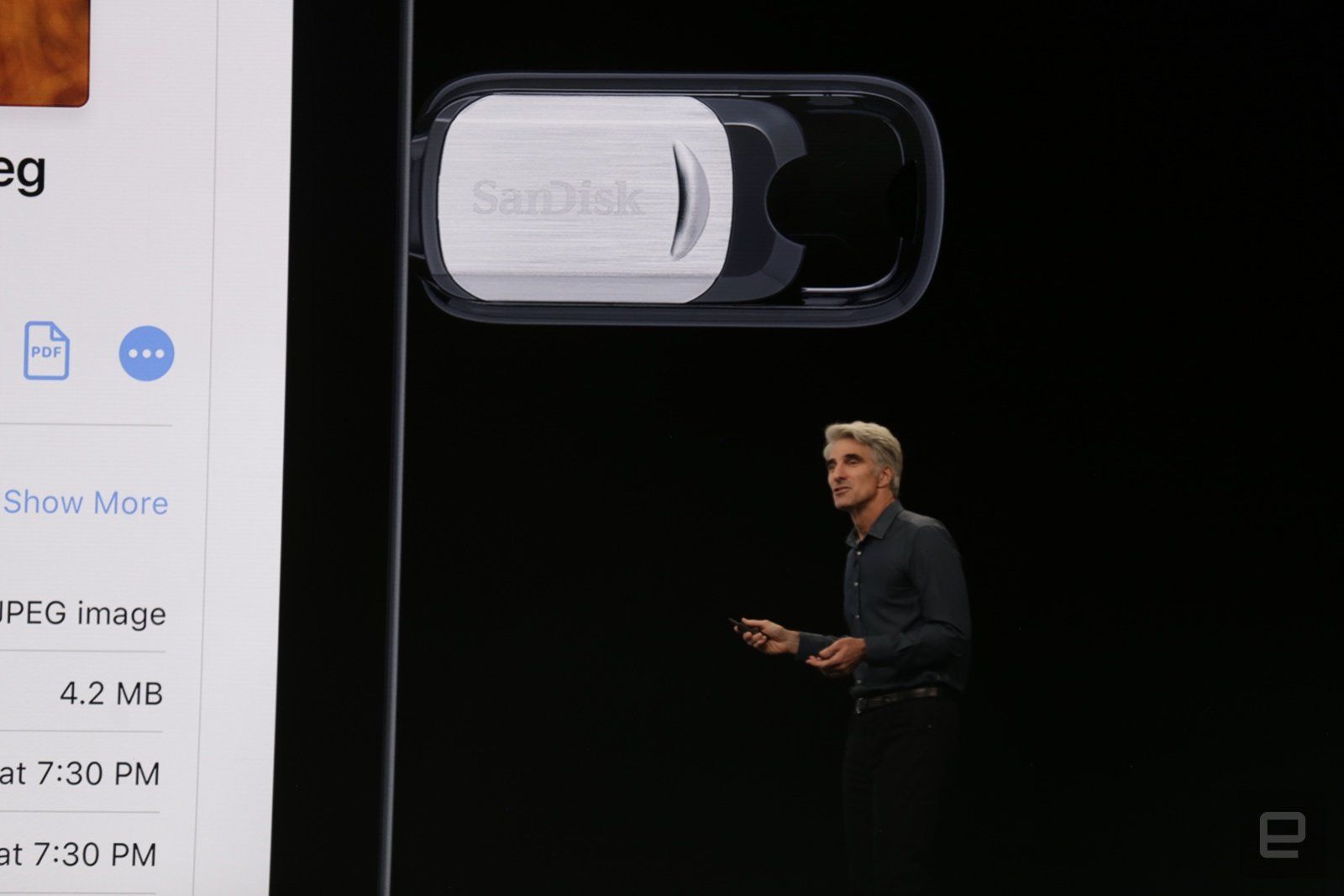 Более серьёзная работа с файловой системой после всех тех баек о ненужности этой «устаревшей концепции». Есть даже свои флешки — через адаптер можно подключить SD-карточку.