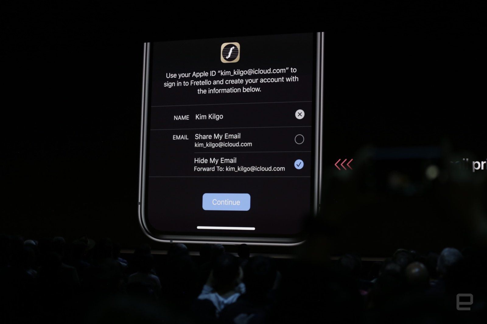 Авторизация в сторонних сервисах через учётную запись Apple. Позволяет войти через отпечаток пальца или распознавание лица, ну и поможет спрятать почту от спамеров.