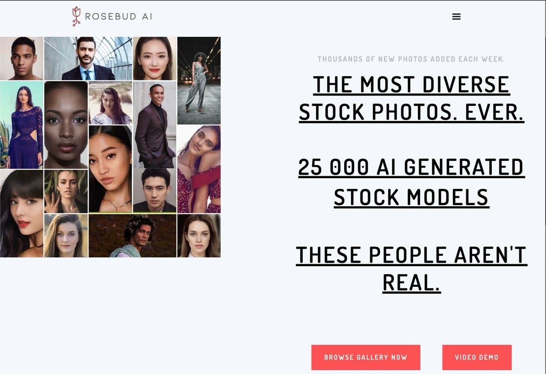 Ещё одна крупная галерея реалистичных лиц, сгенерированных алгоритмами. Причём это не просто лица, а целые позы в классическом для фотостоков виде.