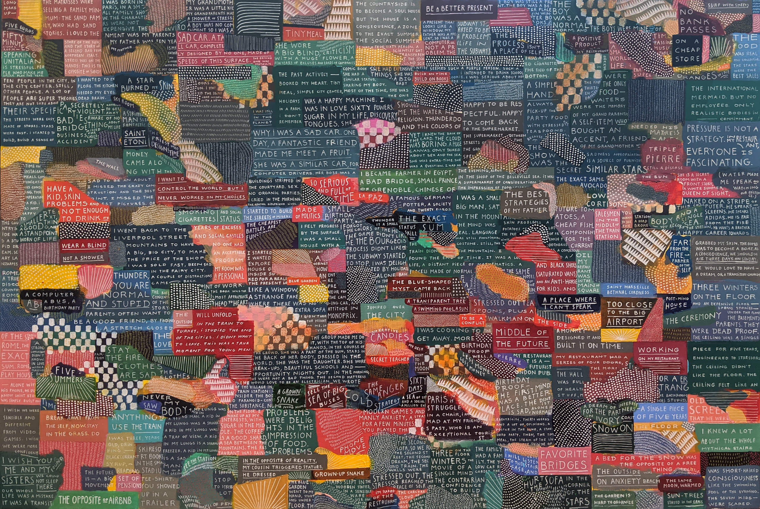 Эксперимент Pierre Buttin по генерации текста и графики на основе собственных заготовок. Он написал свою автобиографию и прогнал через алгоритмический дизайн.