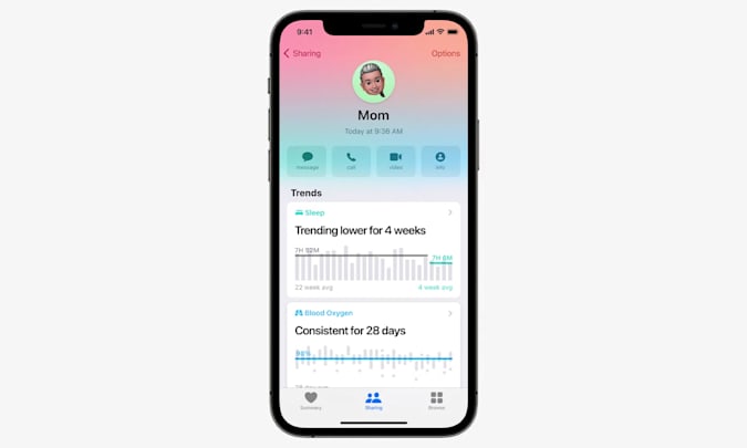 В приложении «Здоровье» появился необычный список контактов с интересным представлением аватаров (градиентный фон под ними).