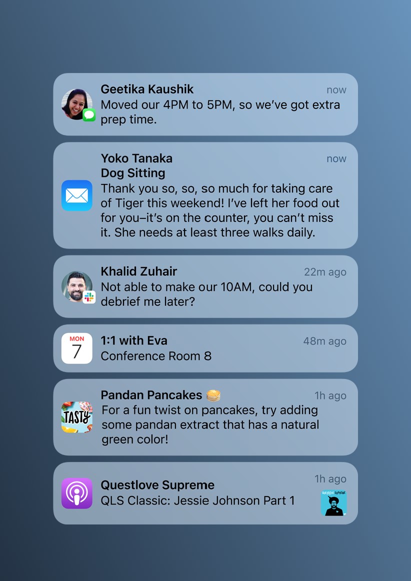 В уведомлениях показывается фото контакта, а не просто иконка приложения. Они также собираются в мини-дайджест (например, утром).
