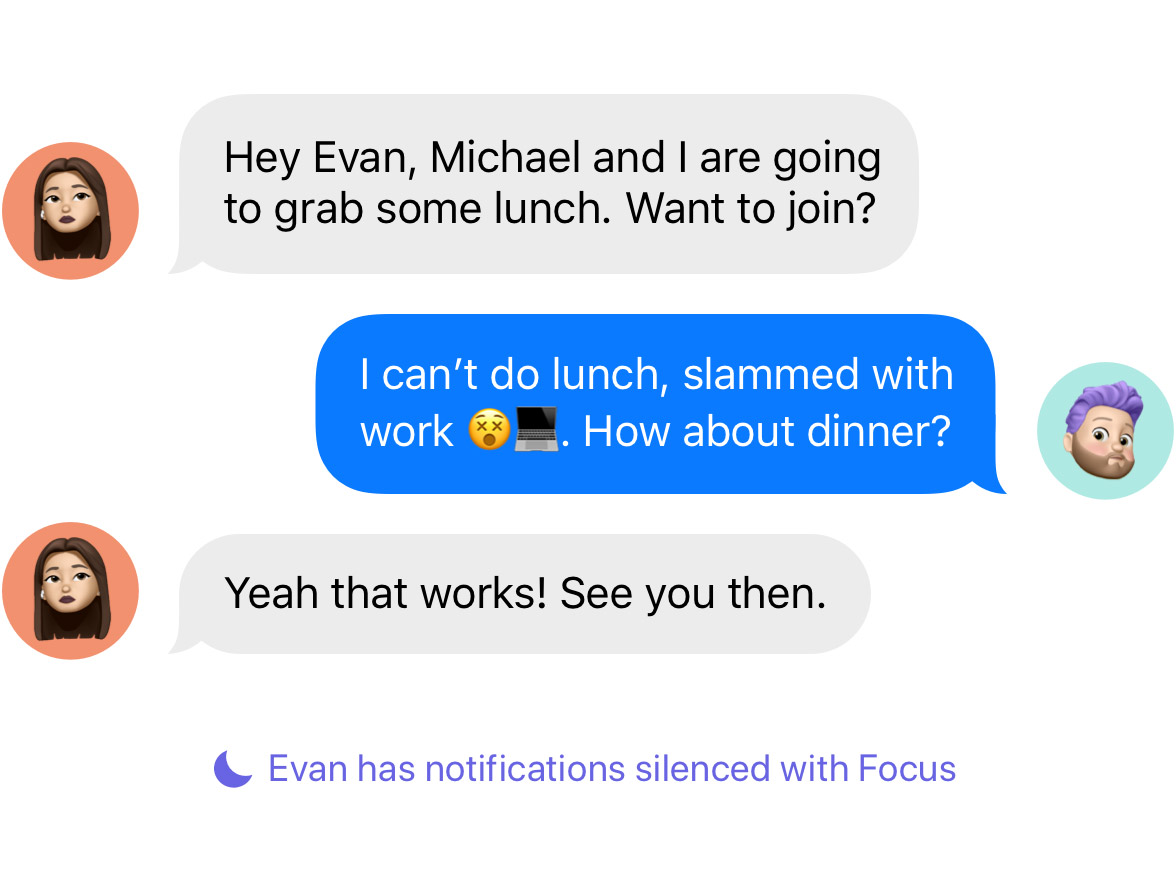 Фокусный режим, который выключает часть уведомлений и показывает статус в мессенджере.