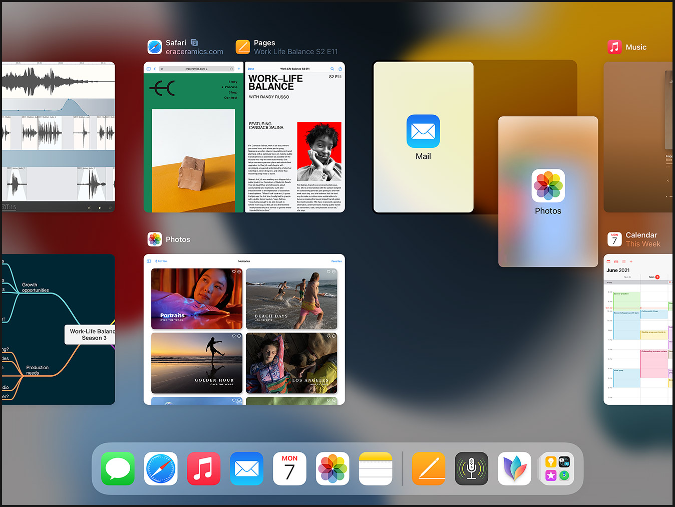 Наглядное переключение режима мультизадачности. Среди них появился режим центрированного попапа (например, для написания письма), а все окна одного приложения можно увидеть списком. Для двухколоночного вида можно создавать готовые комбинации.