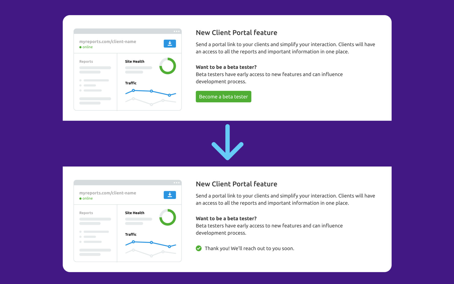 Александр Ревенок из Semrush делится опытом продуктовых экспериментов через метод «фальшивых дверей». Это функции, которые ещё не реализованы, но по интересу пользователей к которым можно предположить их востребованность.