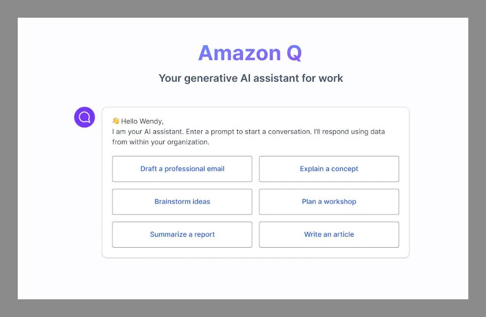 В AWS от Amazon теперь есть свой алгоритмический помощник Q. Он подключается к корпоративным сервисам и помогает анализировать информацию из них.