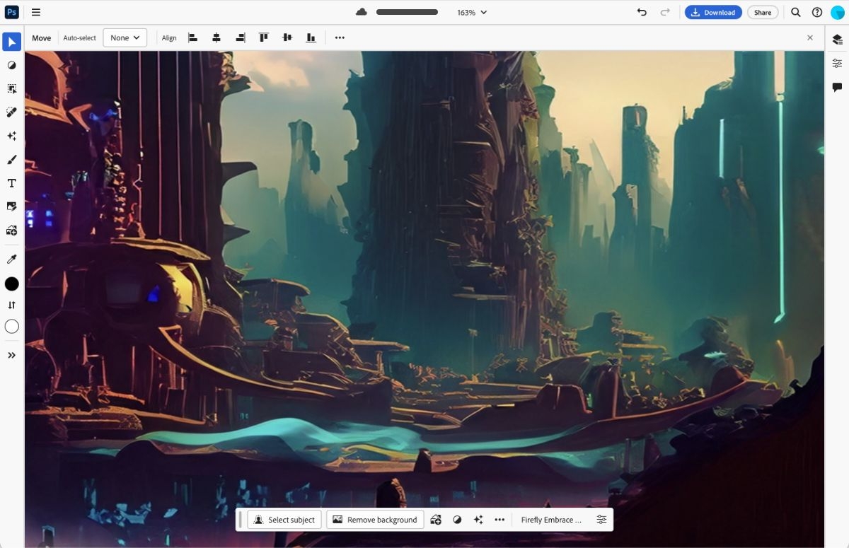 Во-вторых, добавили векторную модель Firefly. Она помогает генерировать объекты, которые вписываются в стиль целевой иллюстрации, делает текстуры и градиенты, ну и правильно организует геометрию и слои.