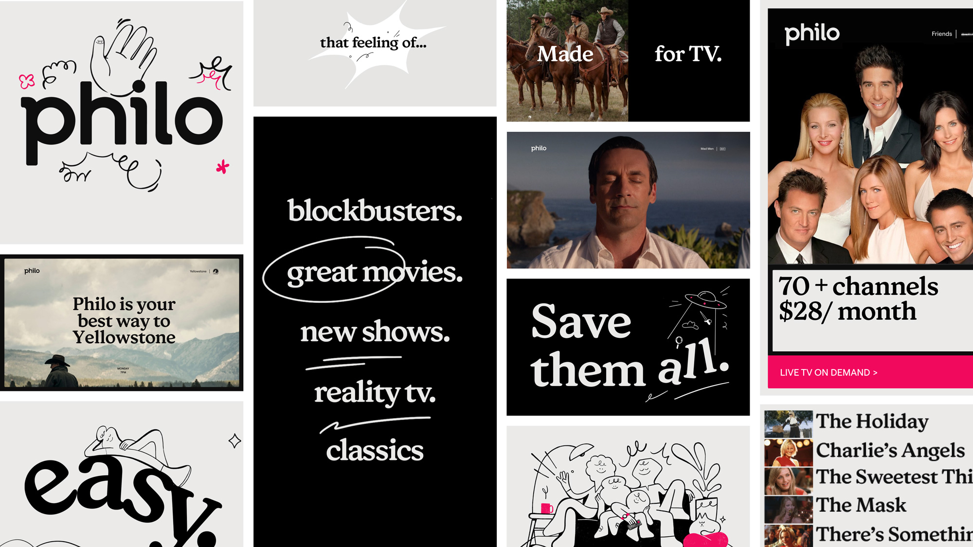Ребрендинг видео-сервиса Philo от американского агентства Sibling Rivalry. Он полностью построен на иллюстрациях.